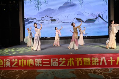 《折柳》和《入畫江南》兩曲開場舞,拉開下午和晚上的兩場匯報演出帷幕,老師們婀娜多姿的舞蹈表演,瞬間把演出現(xiàn)場帶入熱烈的氛圍。伴隨小艷演藝中心多名“金牌”主持人的登臺主持造勢,兩場精彩的匯報演出在臺下熱烈的掌聲中開啟。