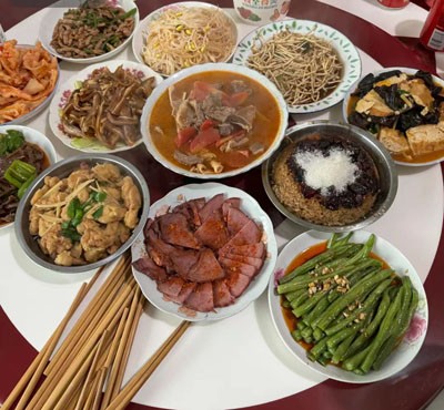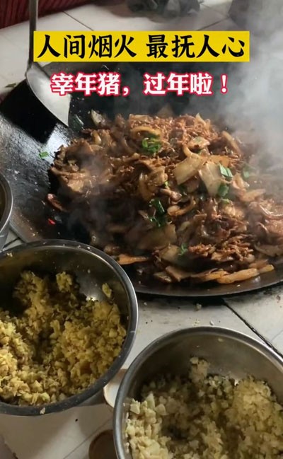 豬肉收拾妥當后,主人家就開始準備請客的飯菜。廚房里,女人們忙碌起來。切肉、配菜、生火,有條不紊地進行著。豬肉的做法多種多樣,最受歡迎的當屬回鍋肉和燉豬蹄。