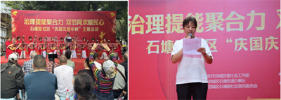 民樂(lè)演奏《唱支山歌給黨聽》二胡的悠揚(yáng)婉轉(zhuǎn)與竹笛的清亮明快交織,熟悉的旋律一響起,臺(tái)下居民紛紛跟著輕聲哼唱,不少老人還輕輕打著節(jié)拍,絲竹聲里滿是對(duì)黨的赤誠(chéng)熱愛(ài),穩(wěn)穩(wěn)拉開了活動(dòng)的序幕。石塘路社區(qū)黨委書記、居委會(huì)主任李蓉詳細(xì)介紹了社區(qū)治理“提能力”項(xiàng)目的計(jì)劃安排,從“服務(wù)理念”到“服務(wù)內(nèi)容”,每一項(xiàng)規(guī)劃都緊貼居民日常生活需求,更送上了真摯的雙節(jié)祝福,現(xiàn)場(chǎng)掌聲此起彼伏,滿是居民對(duì)社區(qū)工作的認(rèn)可與期待。