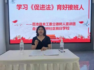 徐天翠在會上講到,中華人民共和國家庭教育促進法,是為了發(fā)揚中華民族重視教育的優(yōu)良傳統(tǒng),引導全社會注重家教和家風,增進家庭幸福與社會和諧,培養(yǎng)德智體美勞全面發(fā)展的社會主義建設(shè)者和接班人而制定的法律。