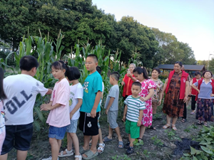 由于近期近40℃的高溫,臨江關(guān)工小組避開高溫時(shí)段,晚飯后,臨江關(guān)工小組組織10名五老志愿者和20名少年兒童進(jìn)行社會實(shí)踐活動?;顒臃?個(gè)小組,每2名五老志愿者帶領(lǐng)4個(gè)少年兒童深入田間地頭,認(rèn)識農(nóng)作物,講述播種、管理、收獲的全過程,盡管都是農(nóng)村孩子,但他們從未接觸過農(nóng)事,邊聽五老講述,邊提出問題:“水稻育小秧苗要多久,移栽多久才收割?”說到收割水稻,幾個(gè)孩子很興奮:“收割機(jī)可厲害了,一會兒就要收割一大片!”“我奶奶告訴我:‘谷子表面很多毛毛,不要去弄,弄了身上會癢癢的,很難受!’”經(jīng)過一塊菜地,孩子爭先恐后:“這是豇豆,那個(gè)是茄子,那邊的是辣椒!”五老耐心地向孩子們講解每種植物的生長期,管理的辛苦,讓孩子懂得了“鋤禾日當(dāng)午,汗滴禾下土,誰知盤中餐,粒粒皆辛苦”的真正意義。聽了爺爺奶奶的講述。孩子們表示,每粒糧食都來得不容易,以后我們要愛惜糧食,節(jié)約糧食。