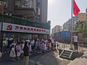 開班儀式開始之前,社區(qū)黨委副書記、關(guān)工委主任萬勇帶領(lǐng)孩子們在萬家社區(qū)黨群服務(wù)中心舉行了升旗儀式。
