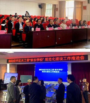 與會人員首先觀摩了廣漢市第四小學(xué)全國規(guī)范化“家長學(xué)校”建設(shè),查看相關(guān)檔案資料,參觀了家長學(xué)校宣傳展板,觀摩了家長學(xué)校建設(shè),聆聽了特色做法和經(jīng)驗介紹。隨后,在廣漢四小會議室召開了德陽經(jīng)開區(qū)關(guān)工委“家長學(xué)校”規(guī)范化建設(shè)工作推進(jìn)會。聽取了該的學(xué)校特色“文化長廊”介紹,學(xué)習(xí)“家長學(xué)?!币?guī)范化建設(shè)檔案資料;觀摩特色課程、“家長學(xué)?!闭拱搴吞厣n程觀摩。