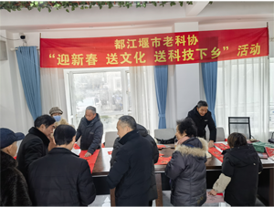 2024年1月23日上午,青城山下,瑞雪飛揚(yáng)。都江堰市老科協(xié)農(nóng)業(yè)工委、“三農(nóng)”分會(huì)在青城山鎮(zhèn)石橋社區(qū)開展“迎新春送文化送科技下鄉(xiāng)”活動(dòng)。都江堰市老科協(xié)會(huì)長劉剛、名譽(yù)會(huì)長冉崇朝、副會(huì)長康忠勇、周德明、監(jiān)事長程元章和三農(nóng)分會(huì)會(huì)員,青城山鎮(zhèn)石橋社區(qū)黨委書記侯大全和社區(qū)群眾代表100余人參加了活動(dòng)。