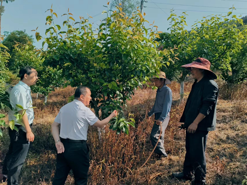 在大寨鎮(zhèn)六門社區(qū)“堅順農(nóng)業(yè)專業(yè)合作社”業(yè)主文志堅經(jīng)營的504畝水果園進行了現(xiàn)場技術(shù)指導(dǎo),手把手傳授施肥、控枝、疏果、套袋等技術(shù)。