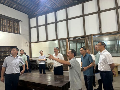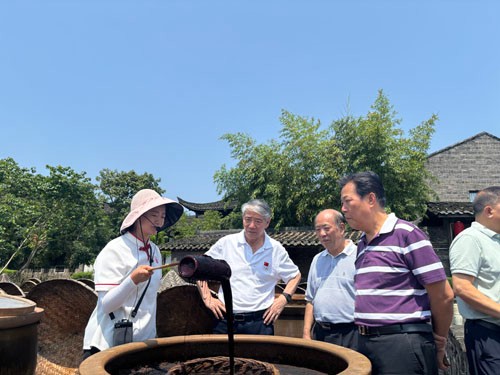 考察組一行冒著35℃高溫到國家級(jí)非遺傳統(tǒng)技藝基地、老科協(xié)聯(lián)系點(diǎn)—合江縣先市鎮(zhèn)“先市醬油”產(chǎn)業(yè)園考察調(diào)研,考察組一行對(duì)老科協(xié)如何幫助指導(dǎo)企業(yè)開展科技創(chuàng)新、如何傳承非遺文化、如何對(duì)學(xué)生開展科普教育等問題進(jìn)行邊考察、邊探討、邊交流。