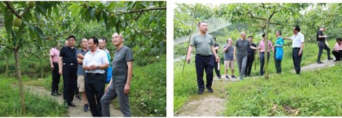 劉剛會(huì)長(zhǎng)一行深入天源康樂(lè)家庭農(nóng)場(chǎng)小水果生產(chǎn)基地,實(shí)地查看了解果樹(shù)生長(zhǎng)情況、修枝整形實(shí)地培訓(xùn)效果、水果長(zhǎng)勢(shì)情況等,并與市農(nóng)業(yè)職業(yè)經(jīng)理人協(xié)會(huì)副會(huì)長(zhǎng)、“都江堰市天源康樂(lè)家庭農(nóng)場(chǎng)”負(fù)責(zé)人趙之元及相關(guān)人員座談交流。